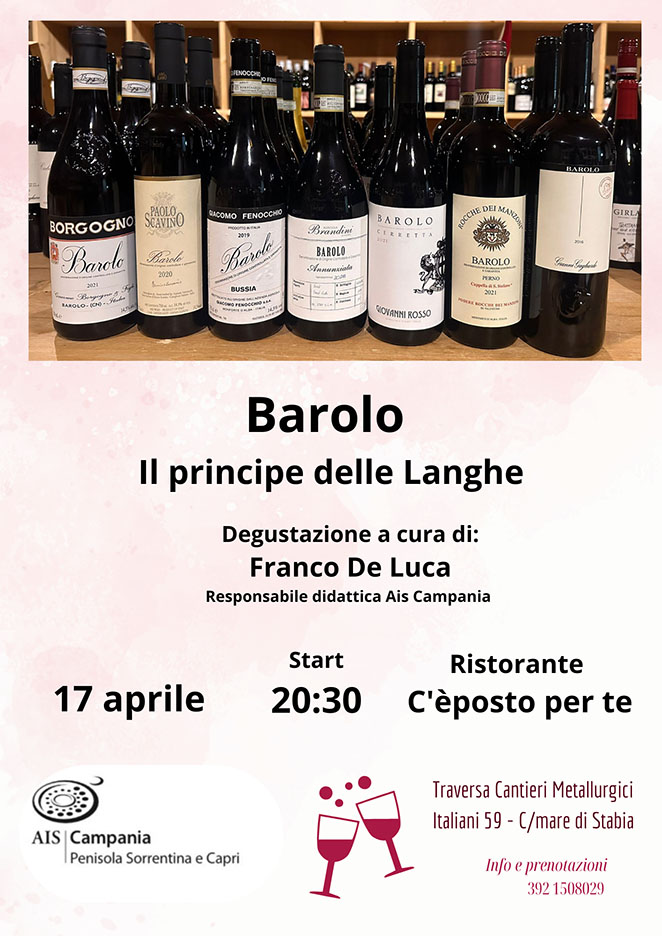 Unisciti a noi per una serata indimenticabile dedicata al Barolo, “Il principe delle Langhe”.