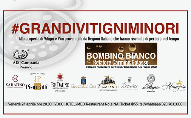 #grandivitigniminori: BOMBINO BIANCO “Metodo Classico”, il seminario, la degustazione e l’abbinamento.