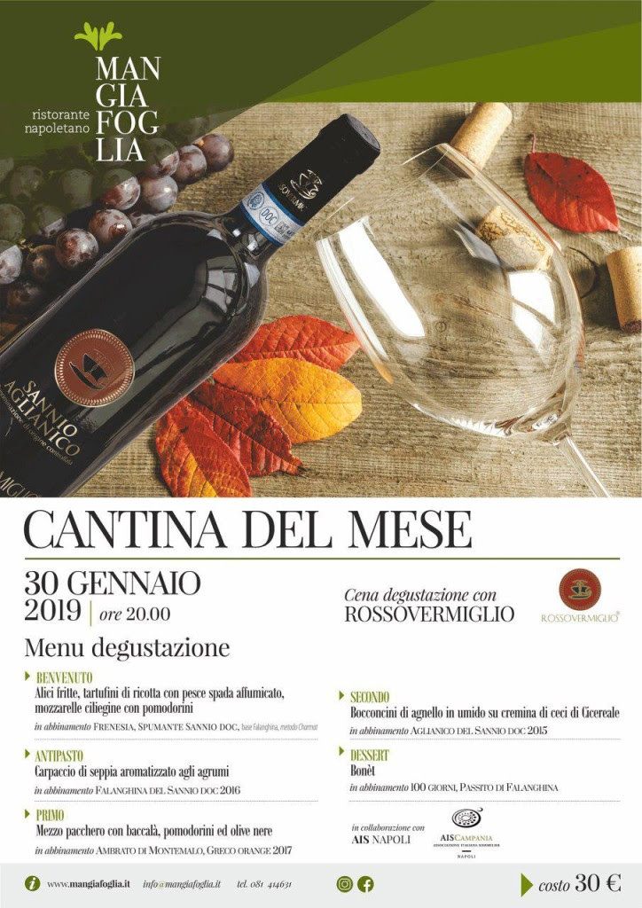 Mercoledì 30 gennaio ore 20,00, presso il Ristorante Mangiafoglia Galleria di Cibo Contemporaneo e in collaborazione con l’Associazione Italiana Sommelier Delegazione Napoli presenta: Rossovermigli