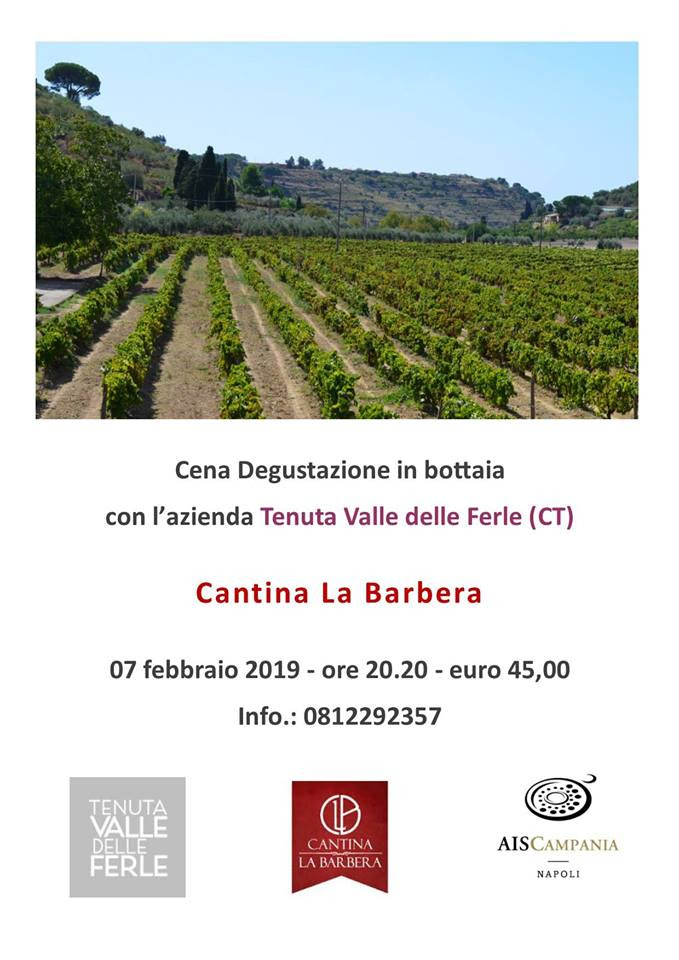 Cena-degustazione nella Bottaia di Cantina La Barbera, seduti insieme ai produttori intorno al tavolone, per conoscere e approfondire i vini della cantina siciliana Tenuta Valle delle Ferle di Caltagirone, nell’aereale dell’unica docg della Sicilia, quella del Cerasuolo di Vittoria.