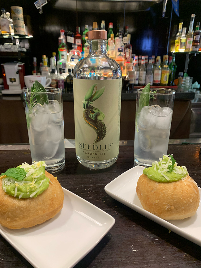 A seguire Orzo a palate, pizza d’orzo in pala con burro all’origano, puntarelle, alici e mandarino che ci ha condotto tra i sapori dell’orto abbinato a Italian Soul, distillato di orzo e frumento, succo di limone, mandarino amaro, zenzero e bergamotto inebriati tra i profumi degli agrumi.