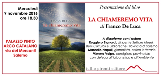 Avvincente e ben costruito, La chiameremo Vita è un viaggio sul filo del tempo, in cui si incontrano personaggi indimenticabili, come l’affascinante Santo Balzano, tratteggiati con estrema delicatezza dalla penna di De Luca; una narrazione dal ritmo incalzante che, in un mix esplosivo di debolezze, conformismo e imprevedibilità del caso, consegna al lettore un romanzo che si colloca a pieno titolo nella grande tradizione del realismo sociale americano, conducendo il lettore verso un finale spettacolare e rivelatore.
